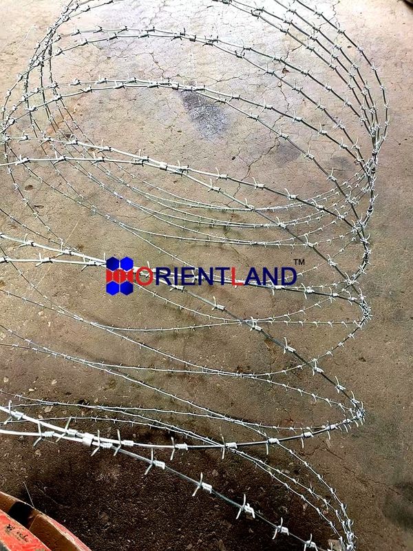 Concertina fil de fer barbelé, également appelé concertina fil de fer barbelé, est une combinaison de fil de fer barbelé commun et concertina fil de rasoir.Il est fait de fil d'acier rond unique à haute traction et de quatre pointes de fil barbelé tordu.Le fil rond unique est fait de fil d'acier ou de fil d'acier inoxydable avec un traitement de surface spécial. Alors que les pointes de fil de fer barbelé tordues ne peuvent être faites que de fil de fer.Et les pointes de barbe sont fixées à intervalles réguliersTout comme le fil de fer barbelé, le fil de fer barbelé est également largement utilisé au sommet des clôtures ou des murs solides existants, dans les frontières, les situations d'urgence ou les activités militaires.